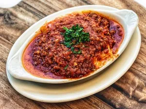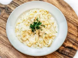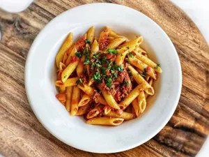 orecchiette in a creamy cheese sauce, baked with crispy toasted breadcrumbs (vt)