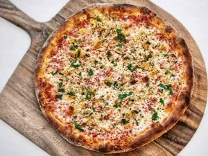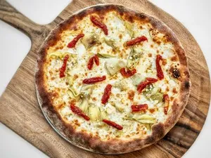 crumbled feta, artichoke hearts, sun-dried tomatoes, mozzarella (no tomato sauce)