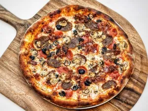 pepperoni, meatball, bacon, sautéed mushrooms, black olives