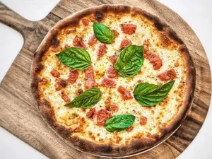 Our Chicken Marg is topped with Basil, Chicken, Garlic Butter Sauce, Tomato.