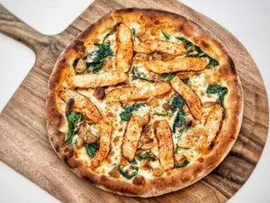 sliced chicken breast, baby spinach, slow-roasted garlic (no tomato sauce)